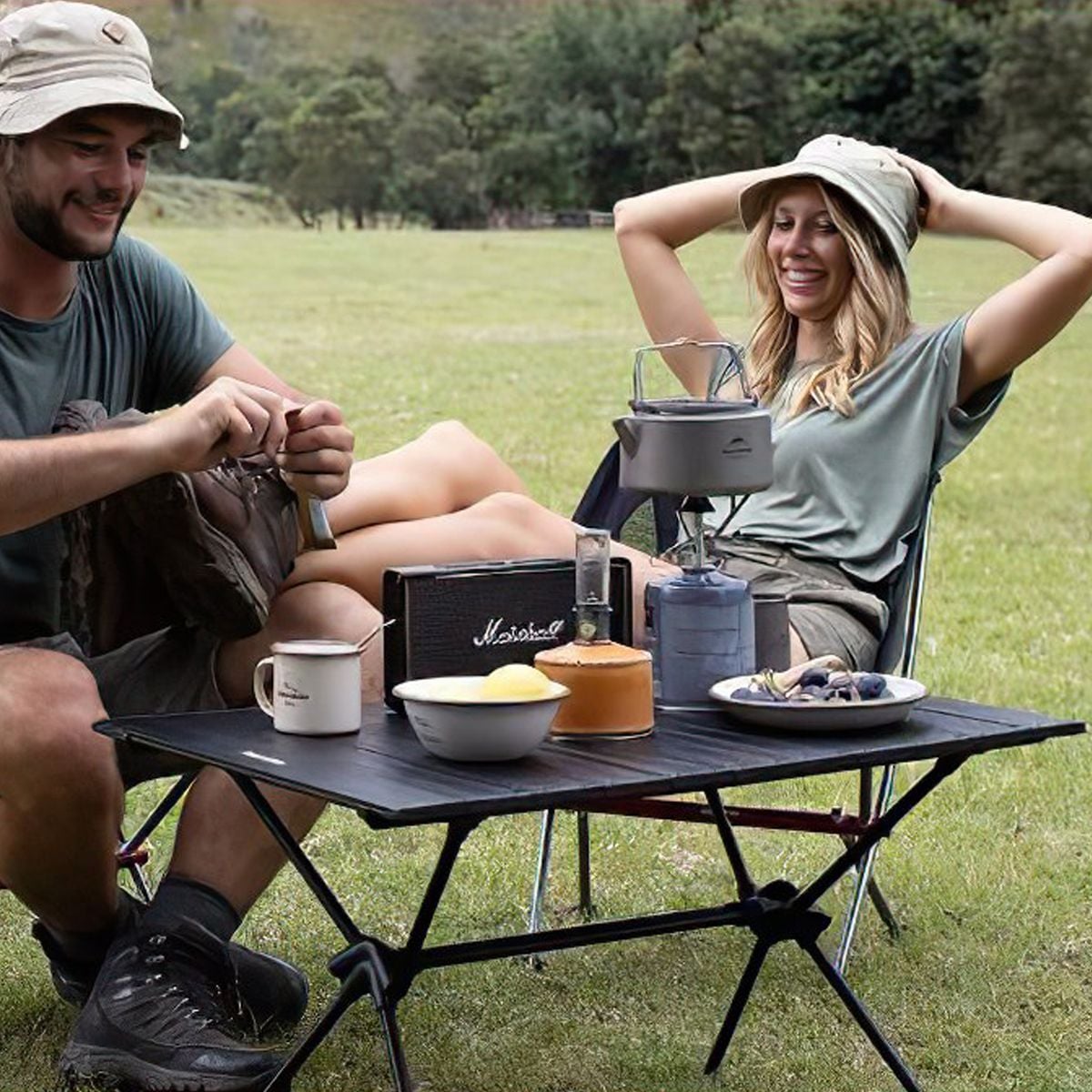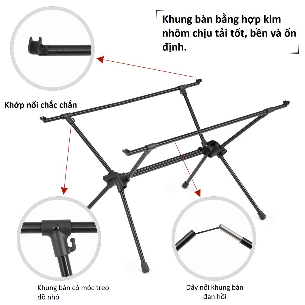- Tải trọng 30kg – Trọng lượng nhẹ nhưng có thể chịu được tải trọng cao nên bạn có thể tự tin sử dụng bàn ăn của mình. Khung bàn có độ ổn định cao, chân chống trượt và nhôm đen được sử dụng để nâng cao không khí cắm trại.
