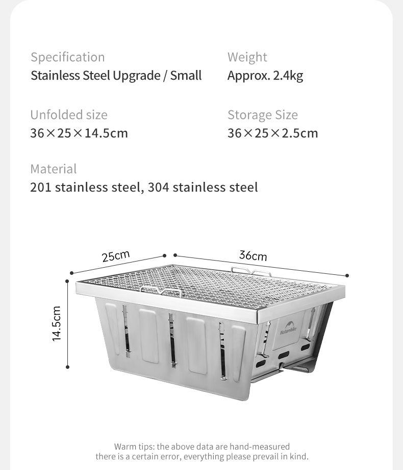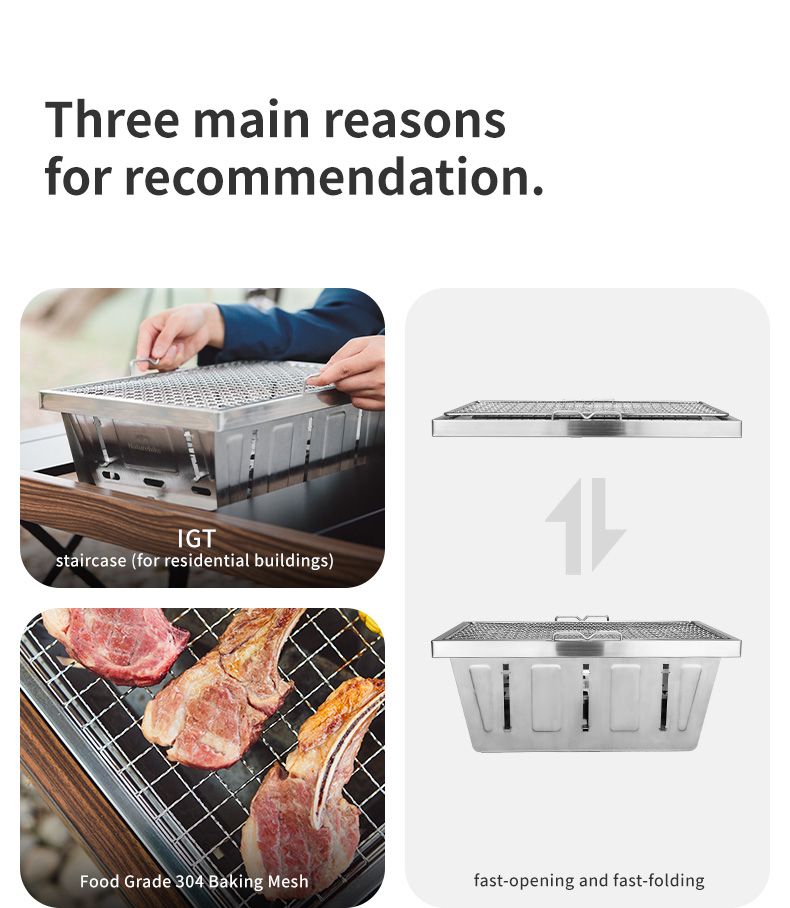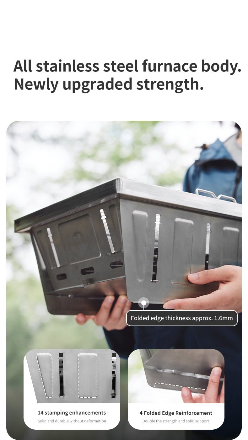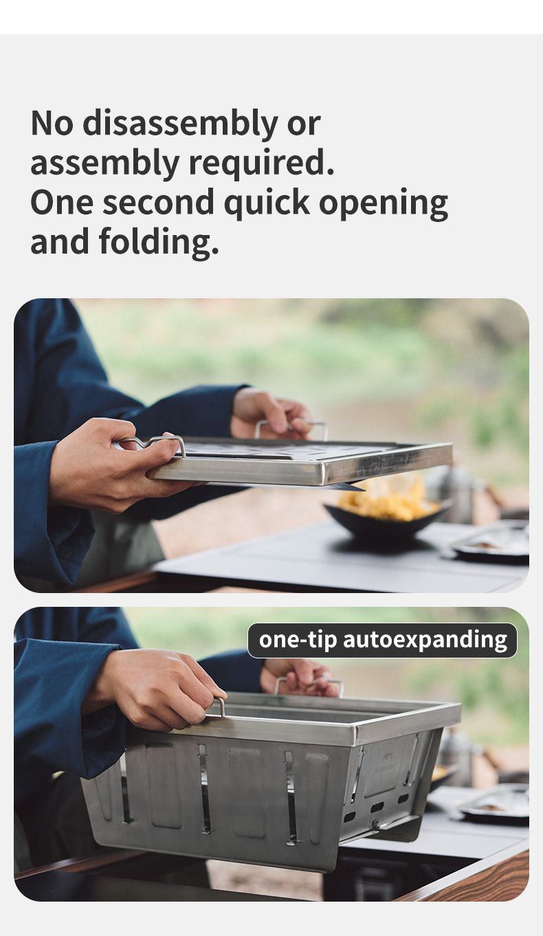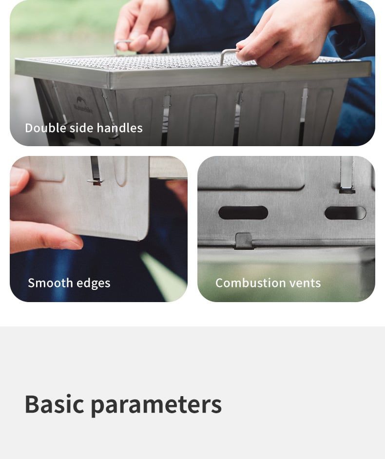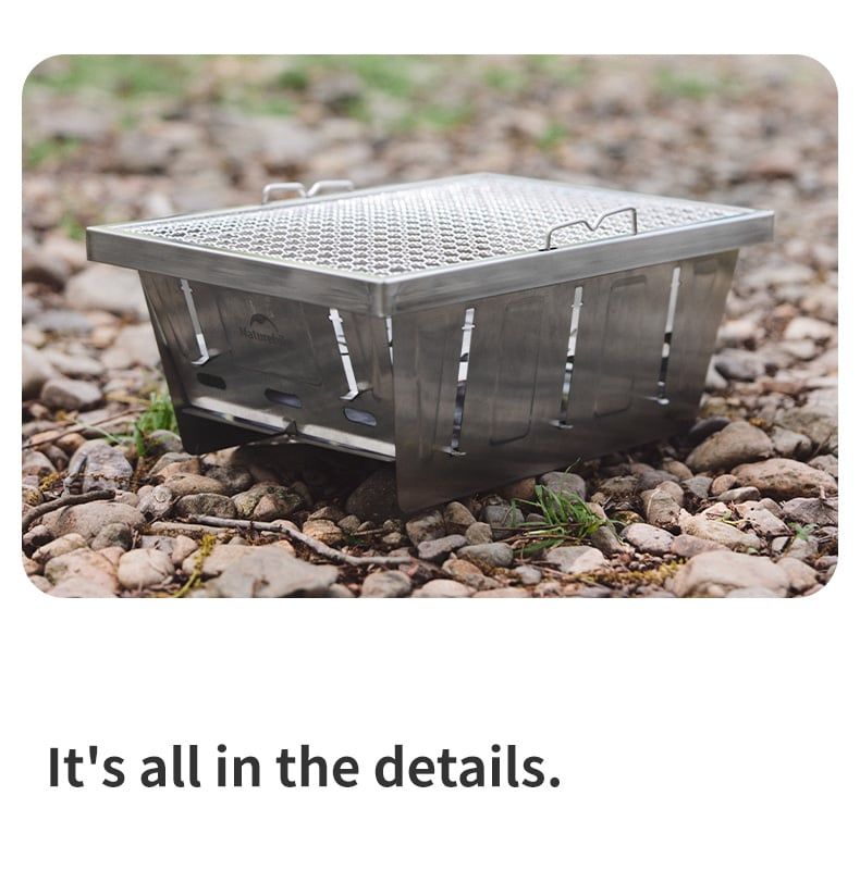 Bếp nướng than hoa gấp gọn Glamping NatureHike NH20CJ006 có thiết kế thông minh, có thể gấp gọn, toàn bộ bếp được làm từ thép không gỉ 304, độ hoàn thiện cao, dễ dàng tháo lắp, dễ dàng vệ sinh sau khi sử dụng thích hợp các hoạt động picnic, cắm trại