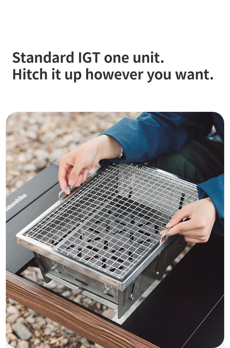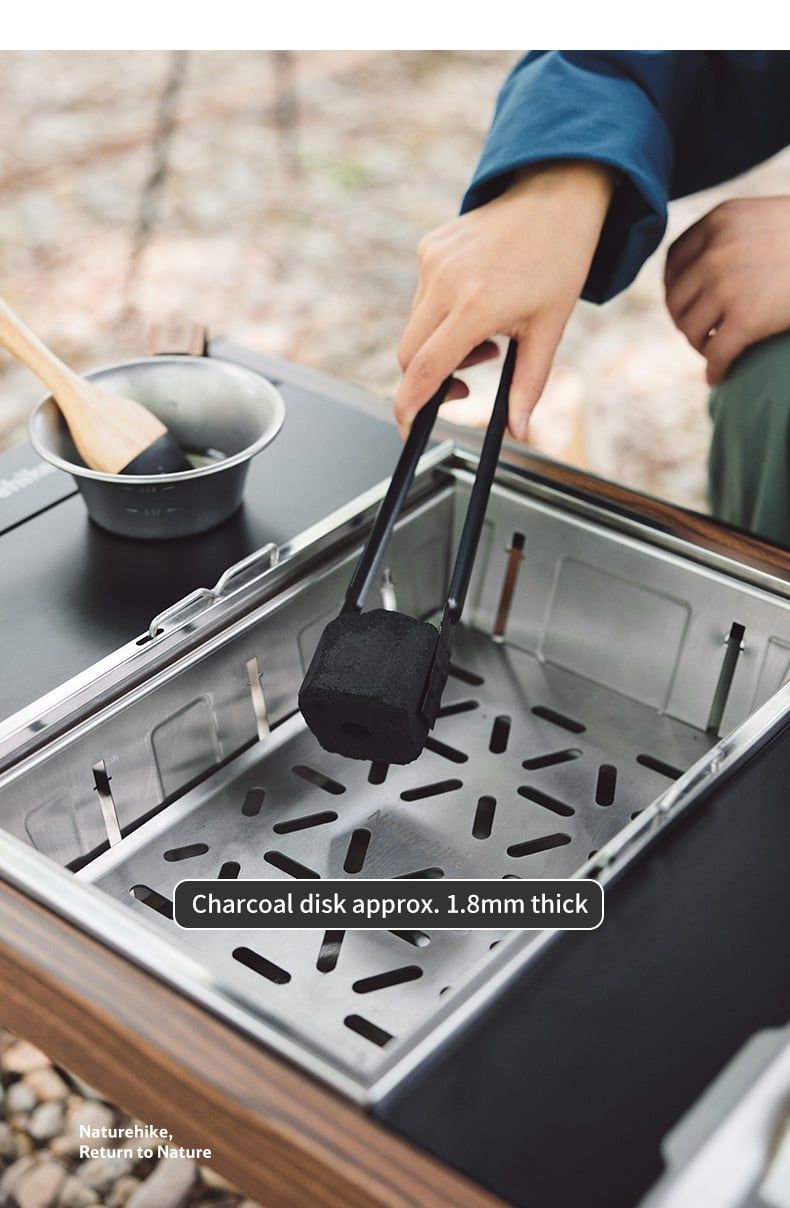 Cấu tạo lắp đặt sản phẩm khá đơn giản, hỗ trợ người dùng sử dụng nhanh chóng và tiện lợi trong các chuyến đi khác nhau. Lò bếp được thiết kế lồng kín, giúp chứa đựng than hay củi đốt, đảm bảo không thoát nhiệt ra bên ngoài. Vỉ đựng tro được đặt phía dưới đảm bảo tro đốt không bị bay bụi cả khi gặp trời gió. Bếp có thể dùng độc lập hoặc kết hợp với Bàn gỗ gấp gọn ray trượt NatureHike NH21JU001 hoặc Bàn nhôm gấp gọn đa năng IGT NatureHike NH21JU011 hoặc Bàn cắm trại đa năng Campingmoon CK-1+P25