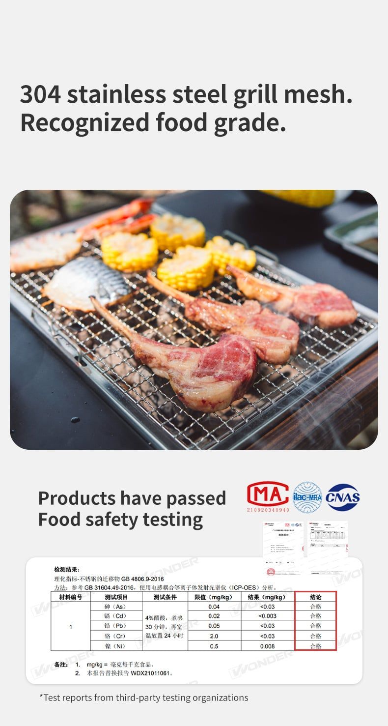 Vỉ nướng được làm từ thép 304 an toàn với thực phẩm, không gây ảnh hưởng tới sức khỏe con người.