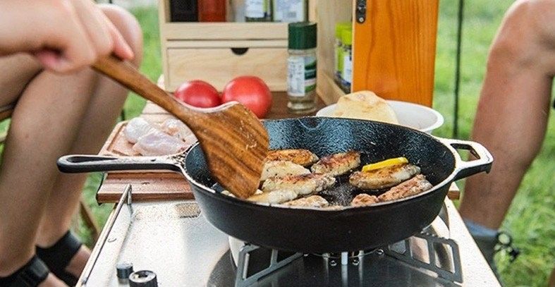 Chảo Gang Cast Iron NatureHike NH20CJ018 lưu nhiệt lâu và giúp món ăn nóng trong chuyến cắm trại thơm ngon hơn, là sản phẩm nấu ăn glamping chất lượng.