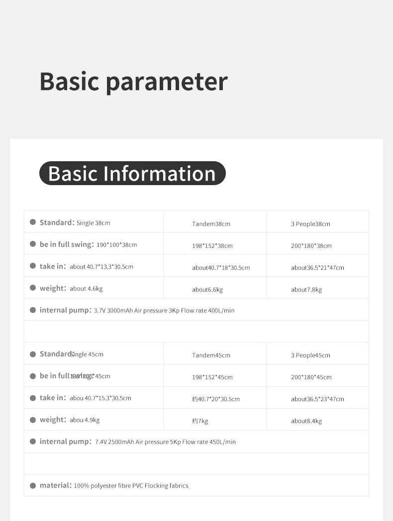 - Tích hợp bơm hơn pin 3000 mAh; Bơm căng đệm hơi sau 3 phút