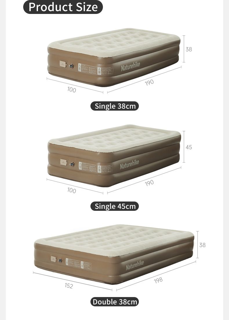 Điểm nhấm đối với Đệm hơi dày 25-45cm tích hợp bơm Naturehike CNK2550WS013 nằm ở Size lựa chọn. Không có một sản phẩm nào được coi là tốt nhất, quan trọng là sự phù hợp với những gì bạn đang sở hữu. Giúp bạn có sự thoải mái trong tổng thể diện tích, không gian sinh hoạt trong trại.