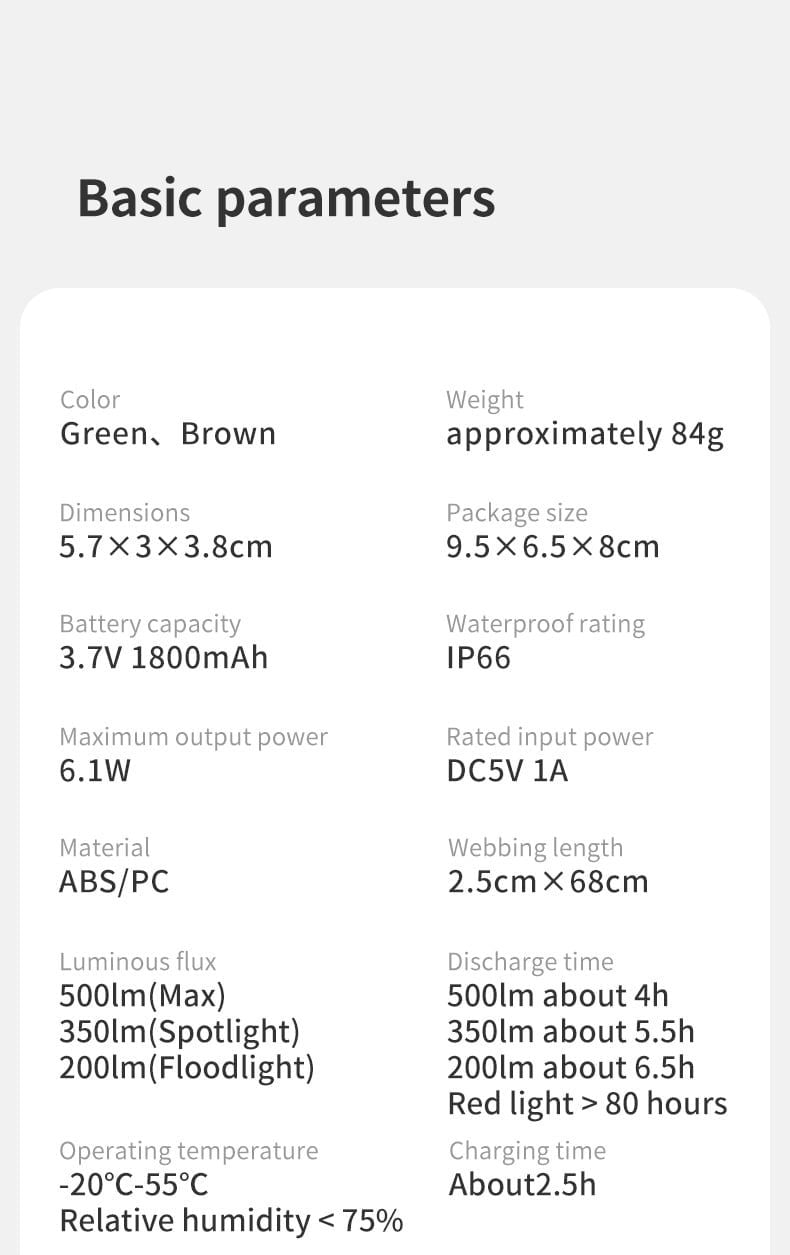 - Độ sáng tối đa 500LM; Liên tục trong ~5 giờ