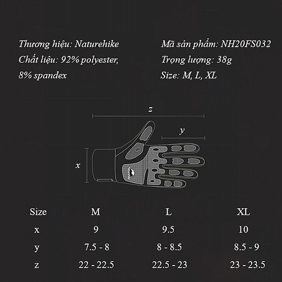 - Găng tay co giãn tốt, form ôm sát tay thoải mái hoạt động