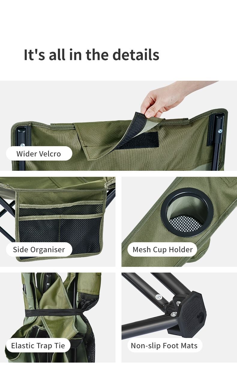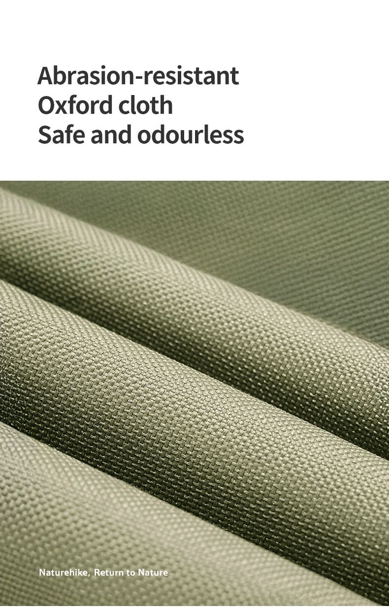 Ghế xếp dã ngoại được làm bằng vải oxford mật độ cao, bền và chống mài mòn tốt, thoáng khí giúp người dùng cảm thấy thoải mái. Vải oxford giữ màu sắc và mới lâu, không bị phai màu dưới ánh nắng mặt trời. Phần lưng tựa bằng vải lưới thoáng khí phù hợp với thời tiếng khô nóng. Phần gối đầu có thể mở rộng che lưng giúp giữ ấm vào mùa lạnh. Sản phẩm sẽ là lựa chọn tuyệt vời cho những ai muốn tìm kiếm một chiếc ghế bền, tiện dụng và thoải mái sử dụng trong những chuyến dã ngoại, du lịch hoặc trong nhà.