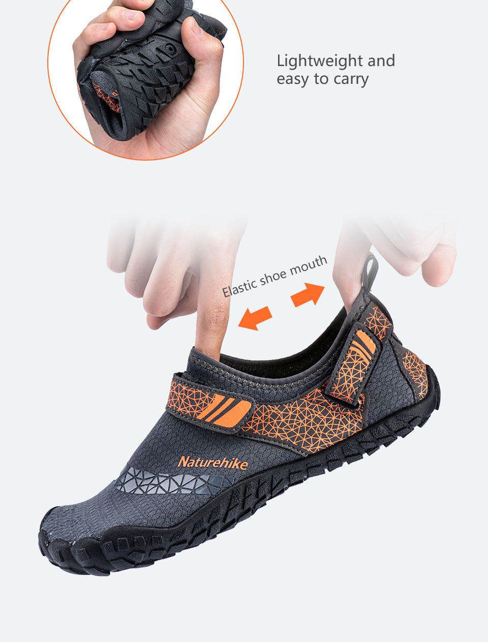 Một đôi giày đi biển cần gọn nhẹ, thoát nước và ôm sát chân. Và giày đi biển chống trượt Naturehike NH20FS022 hội tụ đầy đủ những yếu tố đó, với phần đế giày thiết kế gờ nổi chống trượt giúp bạn di chuyển dễ dàng và thoải mái trên địa hình cát nóng, ghềnh đá hay san hô,...