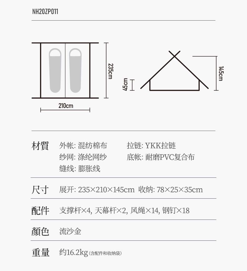 Thông số lều Glamping mái hiên che mưa nắng Naturehike NH20ZP011