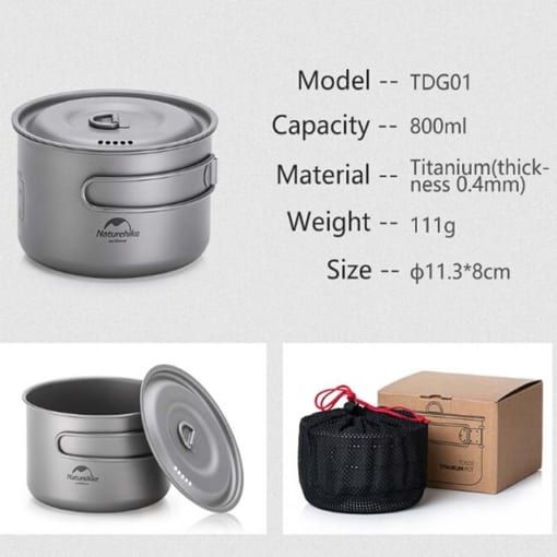 | Tên sản phẩm | Nồi Dã Ngoại Titanium 800ml | 1300ml | 1250ml NatureHike | ||