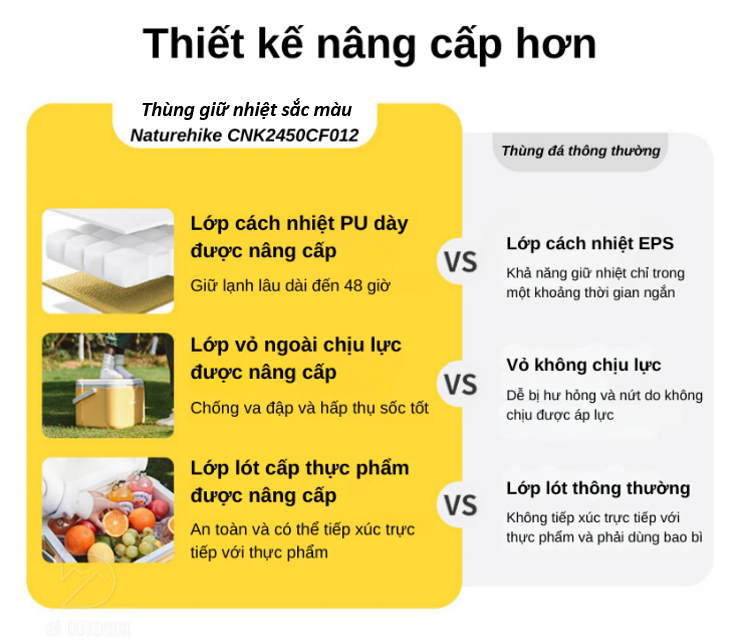 Thùng đá naturehike được cấu tạo từ 3 lớp với lớp lót bên trong, lớp cách nhiệt và lớp ngoài. Mỗi lớp đều được thiết kế một cách tỉ mỉ để đảm bảo khả năng giữ nhiệt tối ưu.