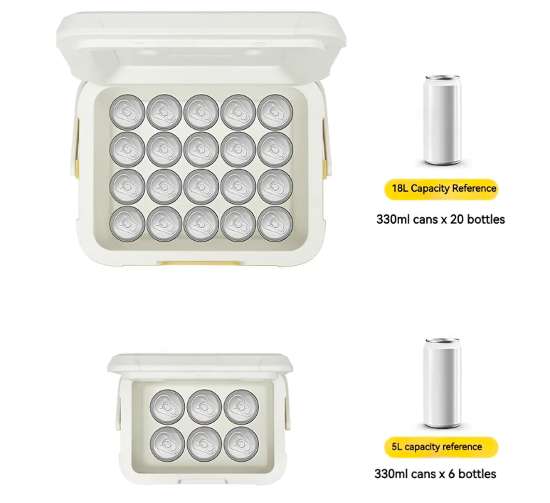 Lớp ngoài của thùng đá có sự khác biệt giữa các phiên bản. Với phiên bản 5L, lớp ngoài được làm từ chất liệu PP thực phẩm, nhẹ nhàng và thuận tiện cho việc di chuyển. Phiên bản 18L sử dụng chất liệu PE thực phẩm, mang lại độ bền cao và khả năng chịu lực tốt, thích hợp cho những chuyến dã ngoại dài ngày.