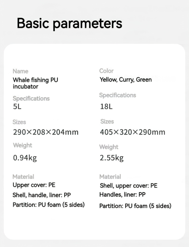 | Chất liệu | Nhựa PP, bọt cách nhiệt PU | |