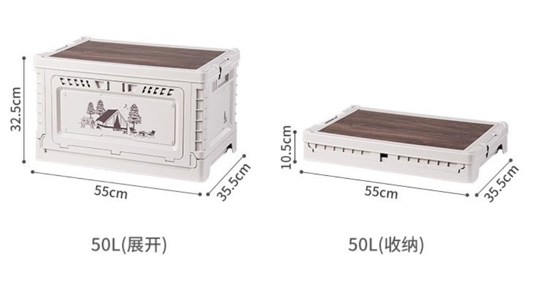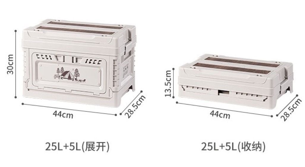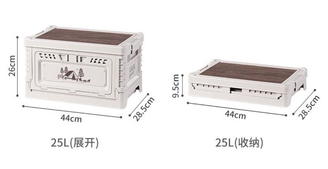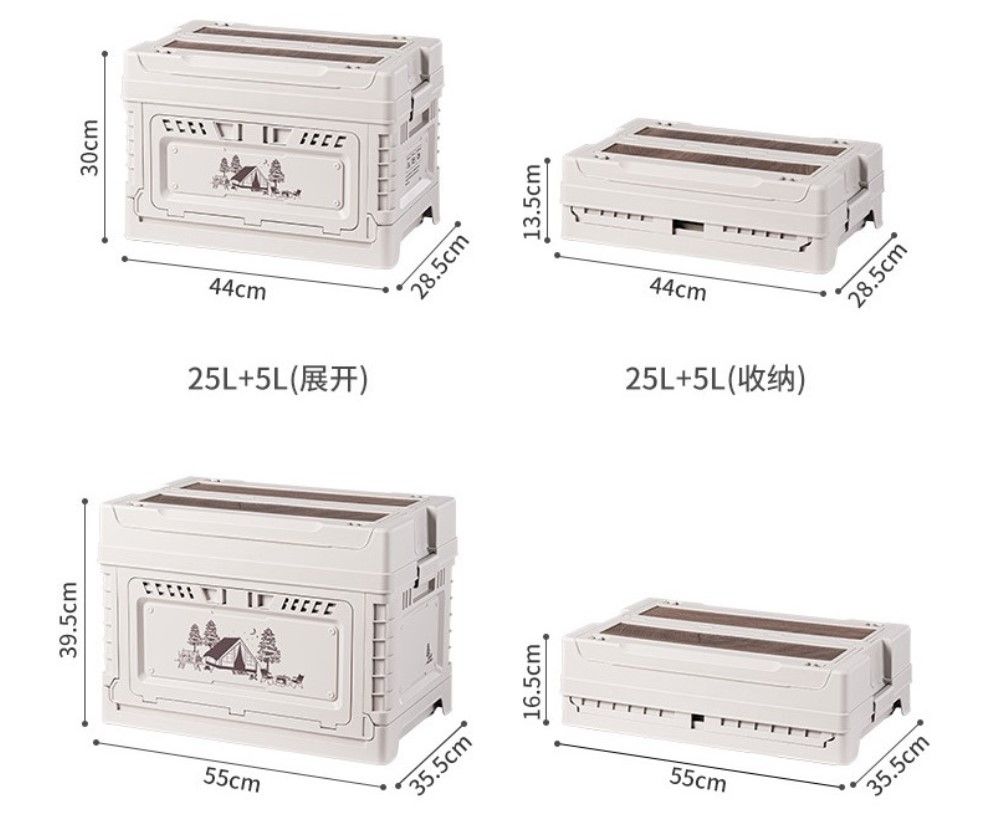 Kích thước khi gấp: 44x28,5x9,5cm (25L) / 55x35,5x10,5cm (50L)