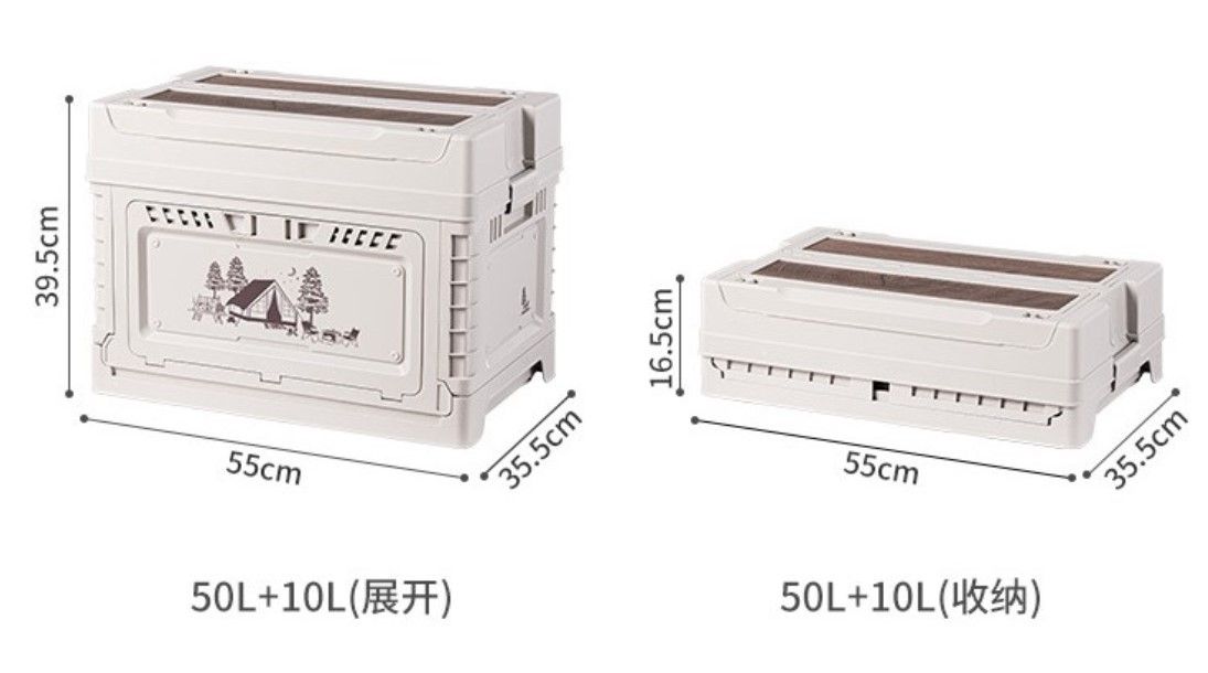 Kích thước khi gấp: 44x28,5x13,5cm (25L+L) / 55x35,5x16,5cm (50L+10L)