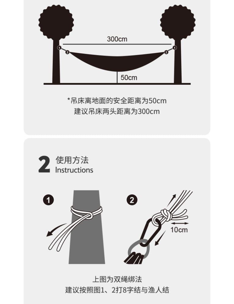 - Kích thước sử dụng: Võng đơn 290 x 148 cm; Võng đôi 290 x 180 cm
